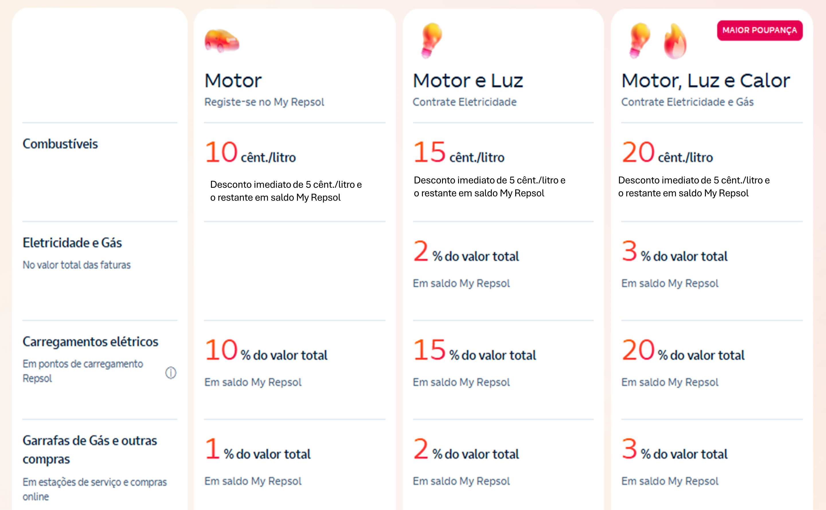 - Acumulação de saldo para pagamentos futuros em todas as Energias Repsol.