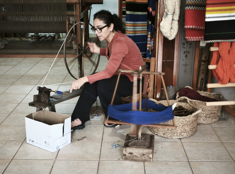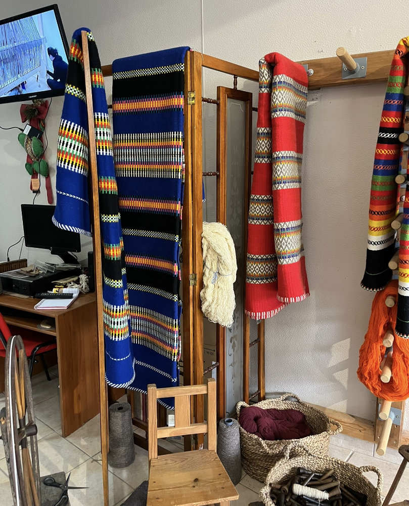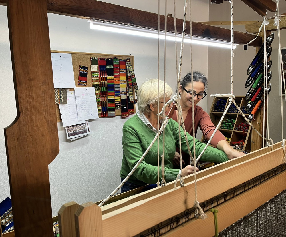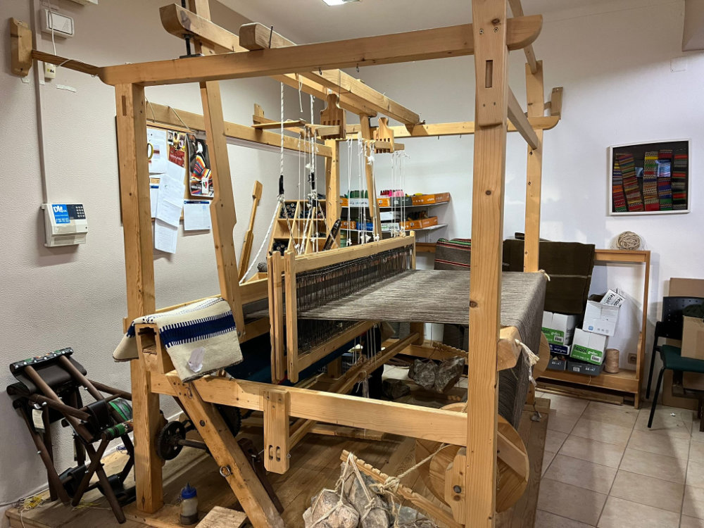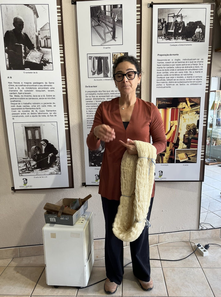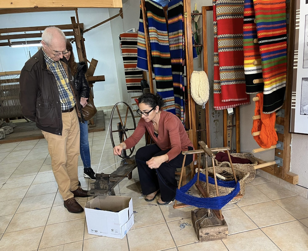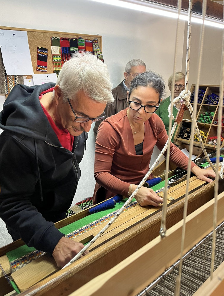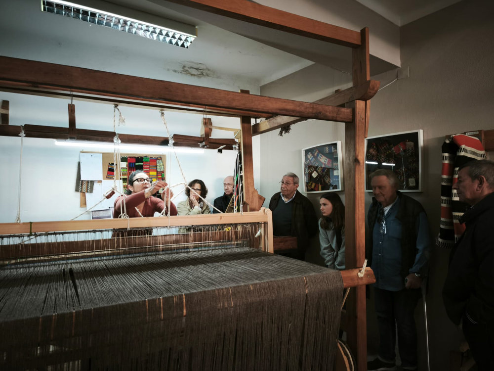 Seguiu-se a visita ao Atelier de Tecelagem Manta de Minde, onde os sócios puderam conhecer a história das tradicionais mantas de lã mindenses — outrora uma indústria de grande sucesso. Acompanhados pelo som característico do tear e pelas explicações da tecedeira Mafalda, observaram o processo de fabrico e alguns até se aventuraram a experimentar o funcionamento do tear, tecendo algumas linhas de uma manta.